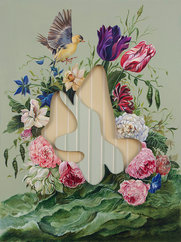 • “Forbidden Fruit II”, 30×24 inches, acrylic on panel, 2025